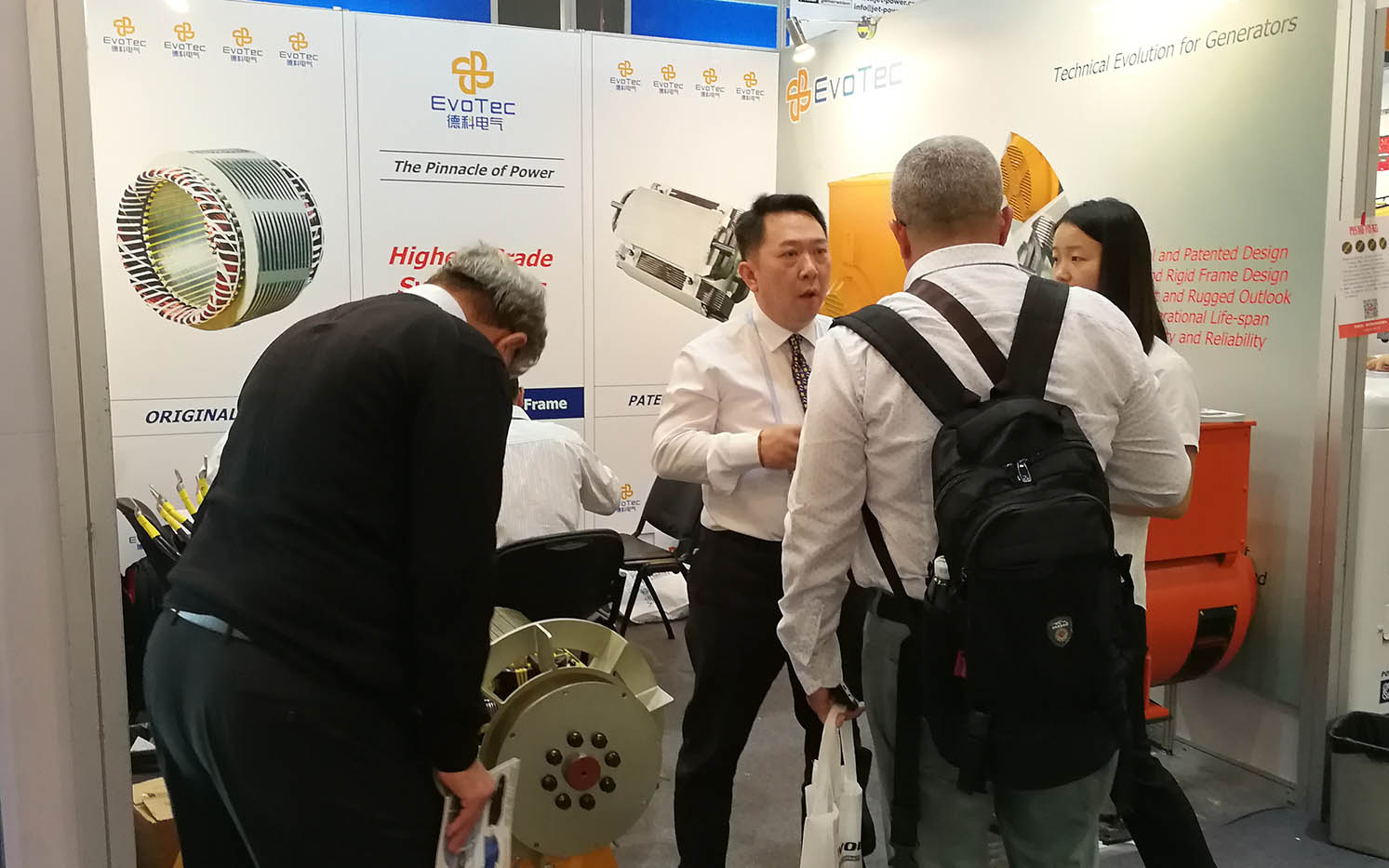 马博_马博(中国)电气作为中国知名发电机品牌制造商,对技术和质量的追求从未止步。秉承着高质量、高服务、以用户需求为导向的产品战略,自主研发的发电机产品一直深受市场好评,远销全球30多个国家和地区。本次广交会现场,EvoTec展台人潮涌动。